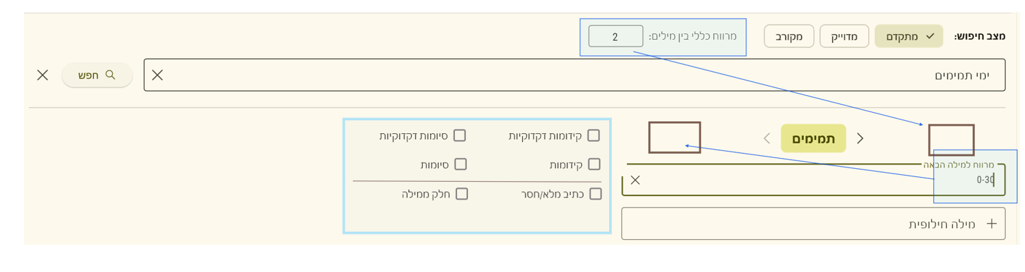 • הצעת ייעול | סידור מחדש לחלון 'חיפוש מתקדם'