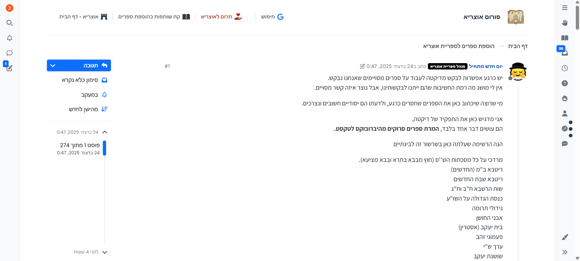 • בירור | מדוע השרשור של הספרים הפסיק להתעדכן??